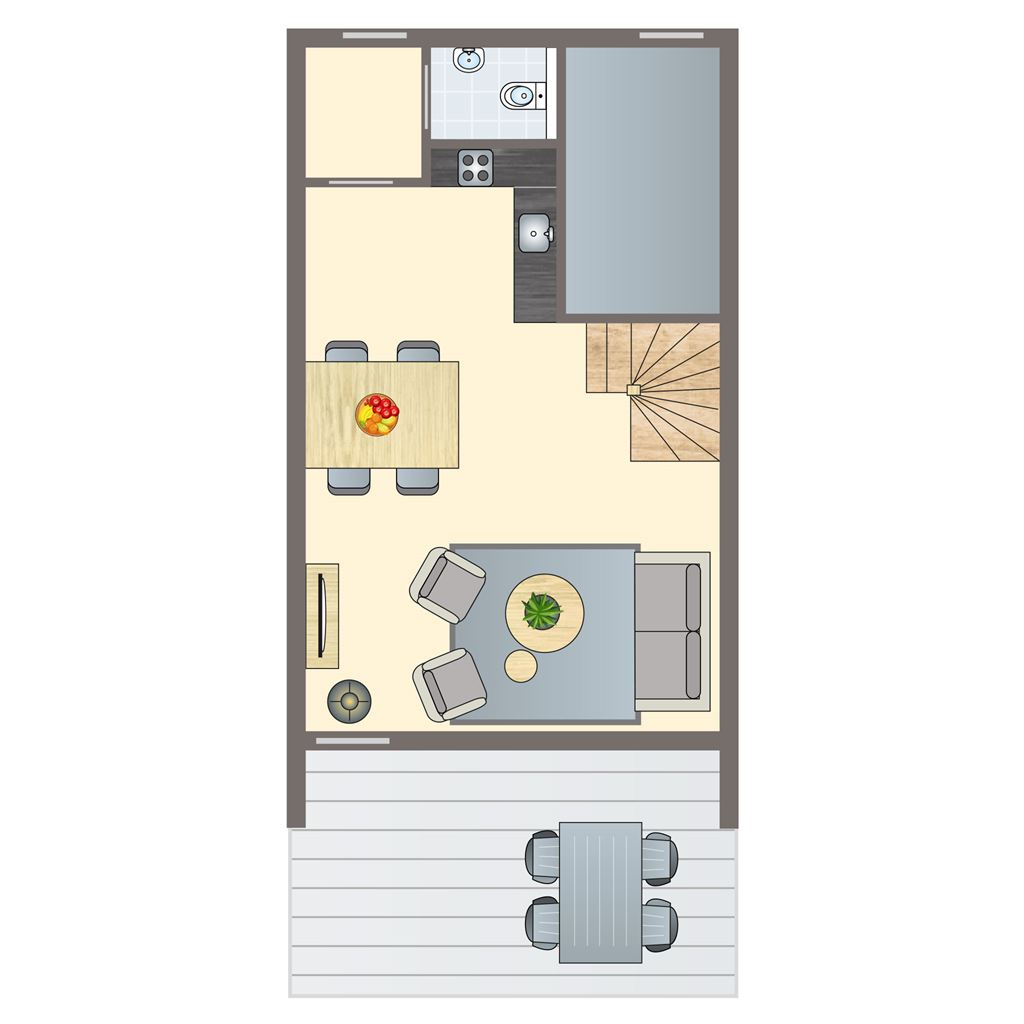 - Als Sonderwunsch buchbar: Badewanne oder WC auf der ersten Etage